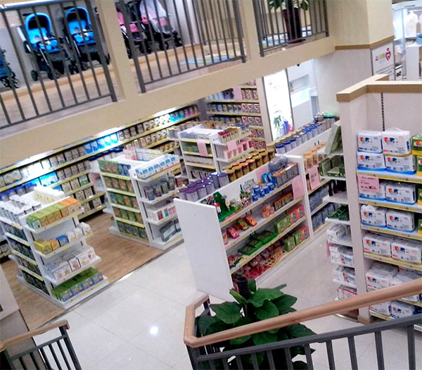 地磚一般暖色、fanghua、反光不能刺眼。頂部吊頂及燈光,燈管一定要在通道正上方,千萬不能在貨架上面,在貨架上面貨架會擋光導致貨架下面兩層的商品燈光效果較差,母嬰店要用幾個吊燈作為點綴。