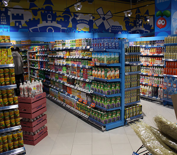1.美觀大方、結構牢固、規格多樣;設計造型具有時代氣派,超市貨架是單雙面貨架可以相互結合,單面貨架可與轉角配套結合,雙面可與半圓配套結合;層間距可任意調節,顯得大方得體;