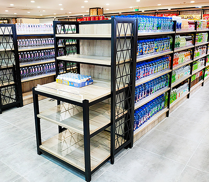 【特 點】該款鋼木展示架整體為組裝式結構,智豪華昌貨架廠采用加厚型材料制作,載重升級;表面光滑、整體堅固穩定、外形美觀。適用于商場超市、便利第、進口食品店、藥房藥店、母嬰店、便利店、文體店等多場所。