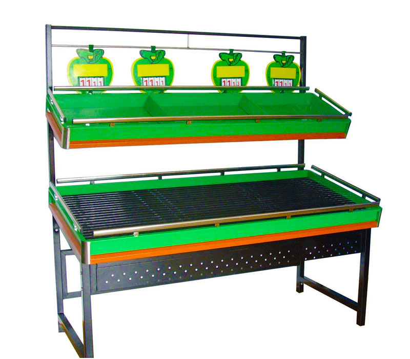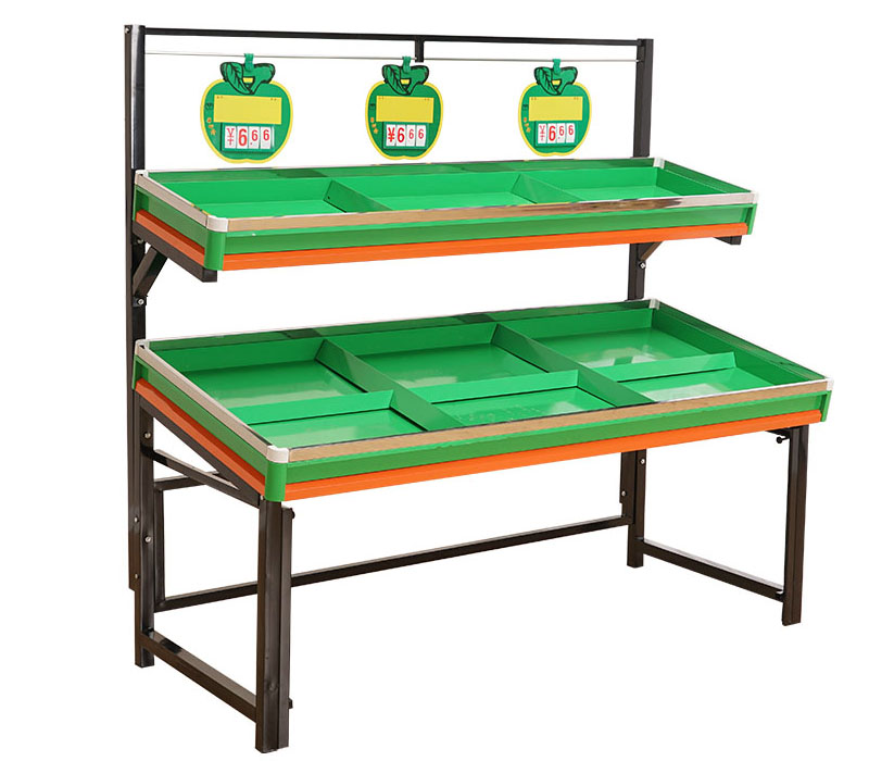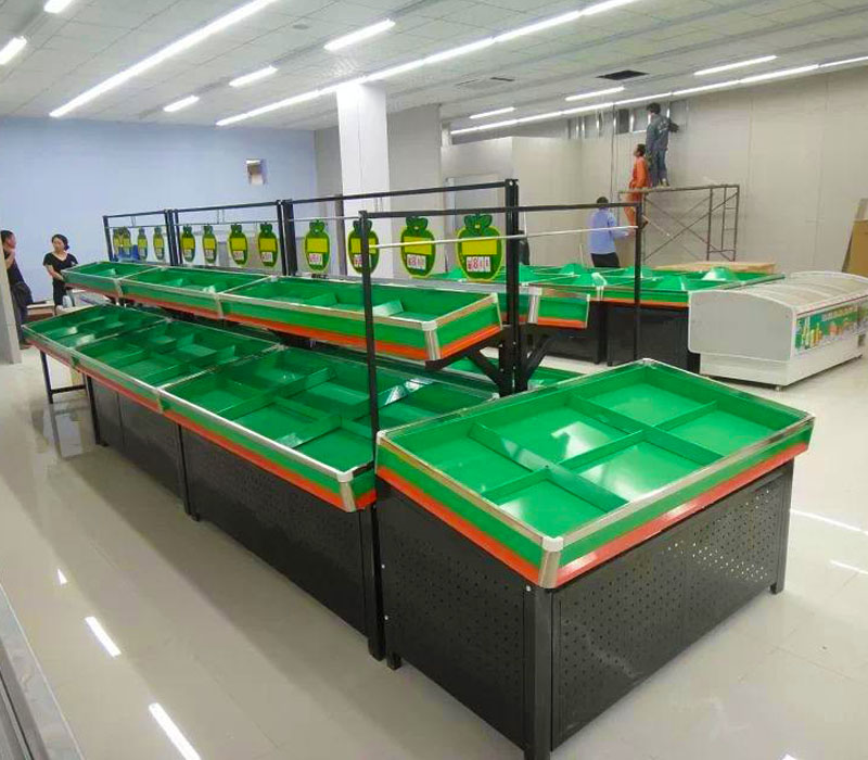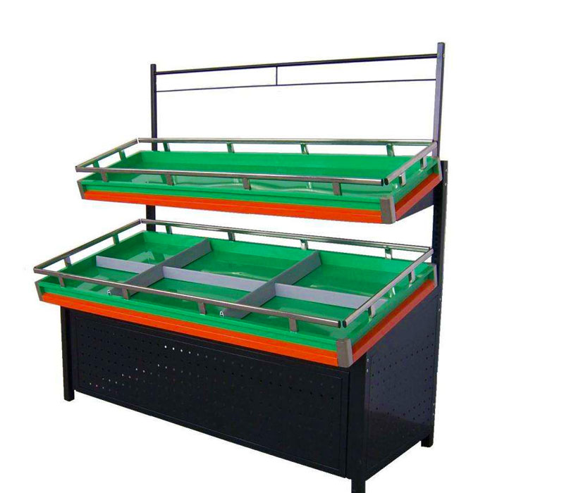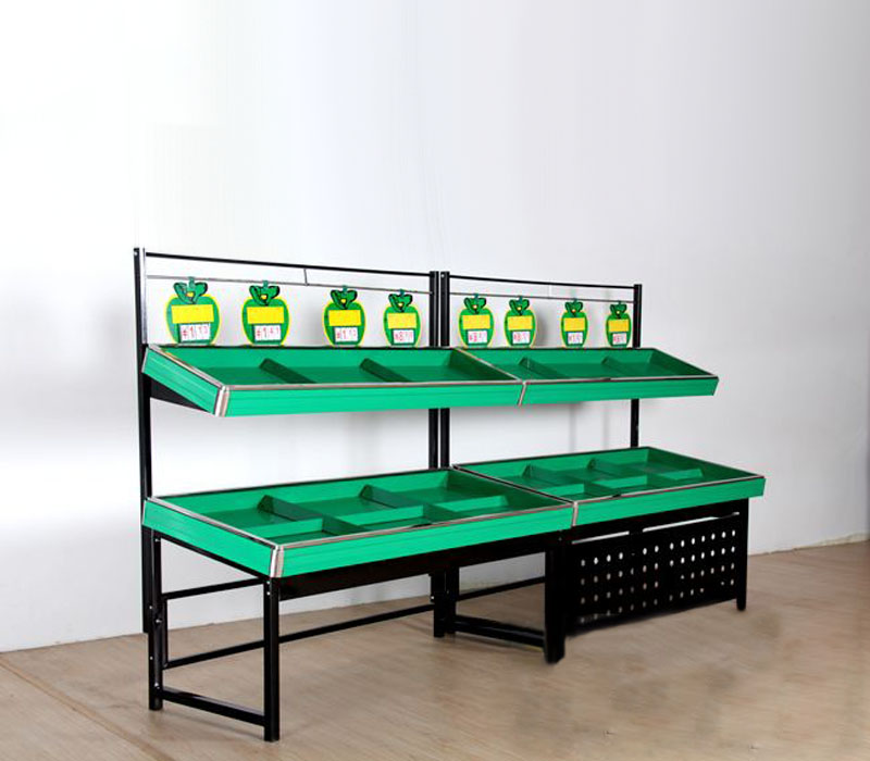 【特點優勢】便于水果、蔬菜的陳列擺放,帶價格牌桿,帶格擋,帶綠色沖孔門板或者黑色沖 孔門板。