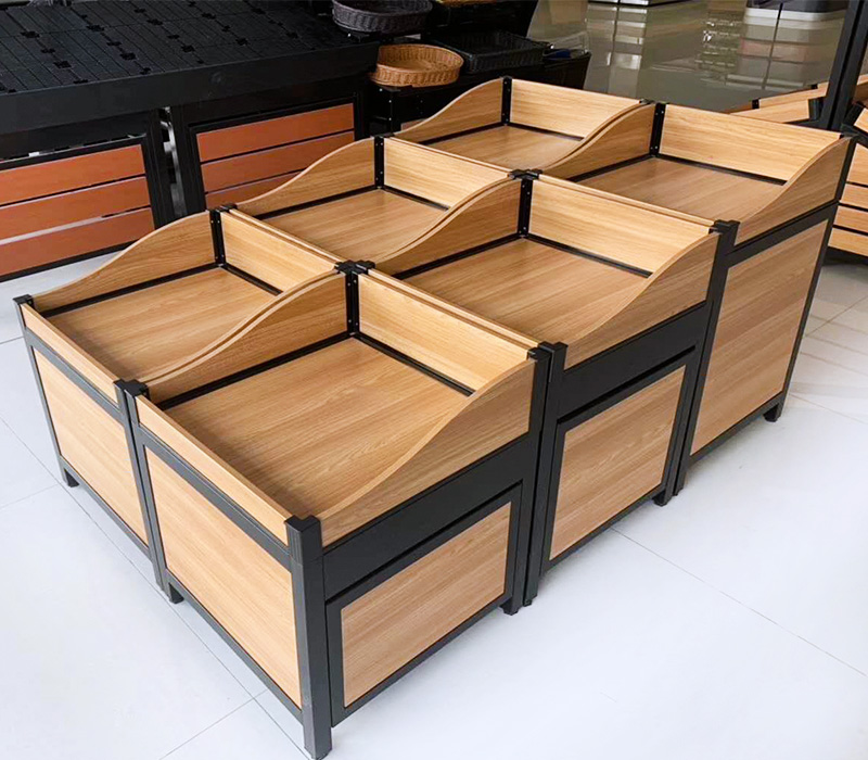 【特點優勢】該款弧邊造型蔬果堆頭展架采用了優良鋼木結合材質制作,鋼材經過物理除銹、噴塑等工藝處理,結合木板更具質感,使得整體外觀簡約大方。