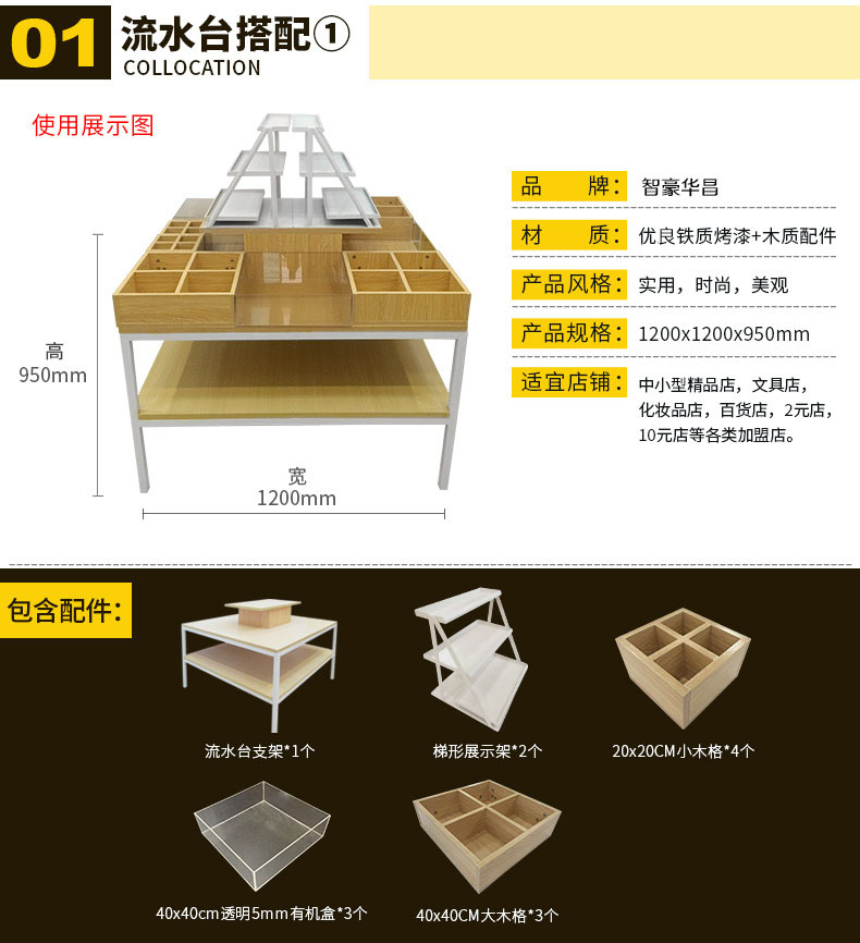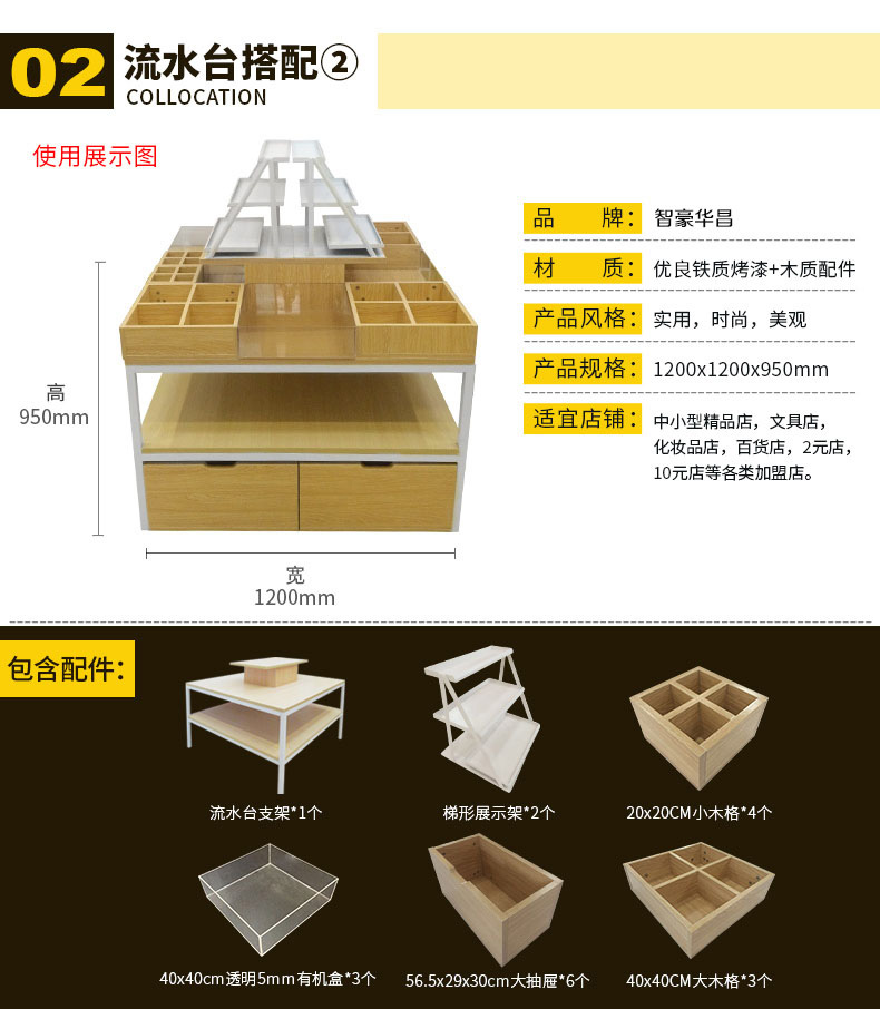 1.采用原木材質制作,多層次擺放設計,滿足各種商品的擺放需求;