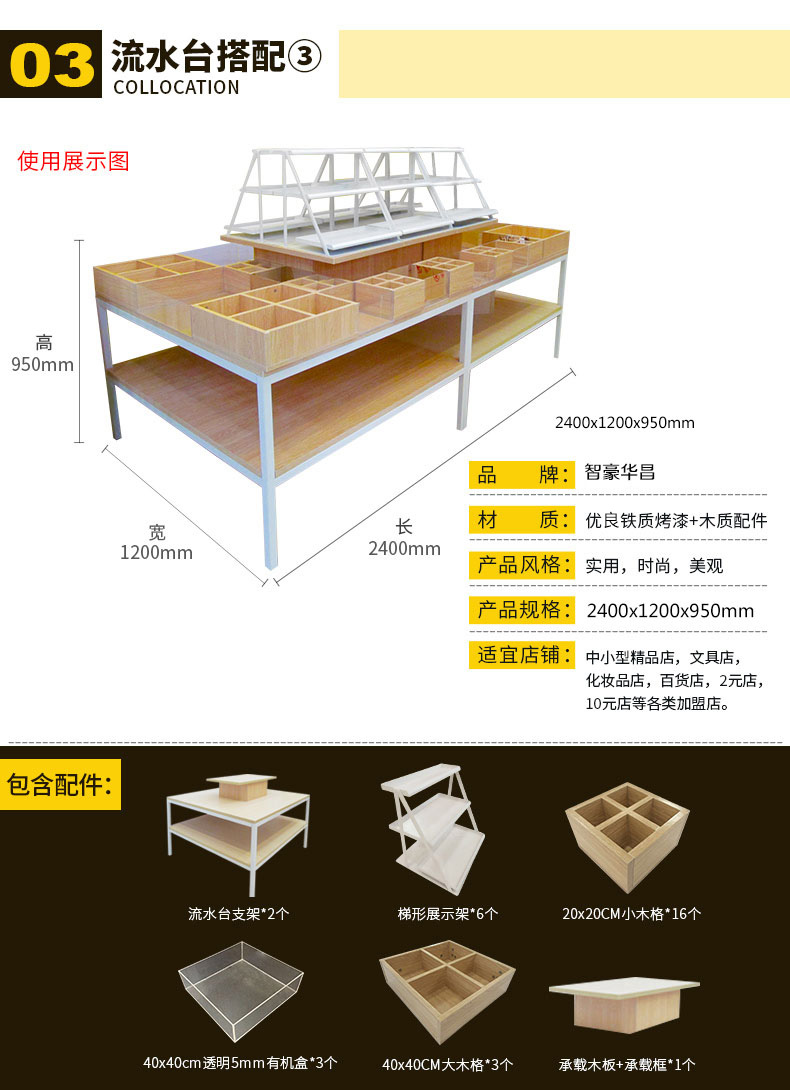 【配件設備】流水臺支架、梯形展示架、20*20小木格、40*40大木格、40*40透明有機盒、大抽屜