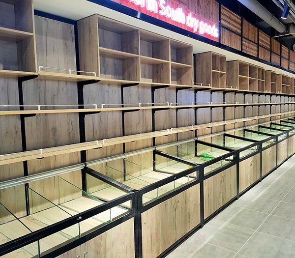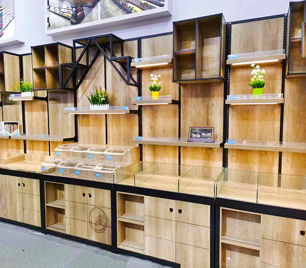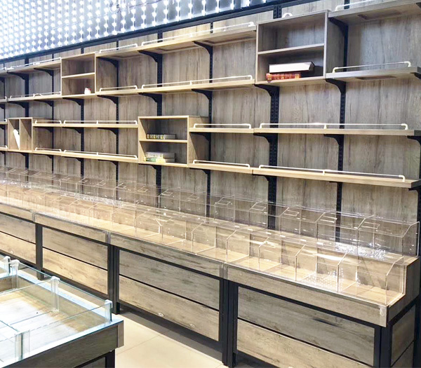 【特 點】該款土特產展示柜可采用全木制結構制作,也可選用鋼木結合材質,可以根據不同的商品進行分類展示,可根據展示需求定做不同的造型樣式,木板有多種顏色可選,通用性好可以陳列多種商品,如散裝零食、干貨、糖果、臘制品等等。歡迎撥打熱線028-6454-2475咨詢、訂購。
