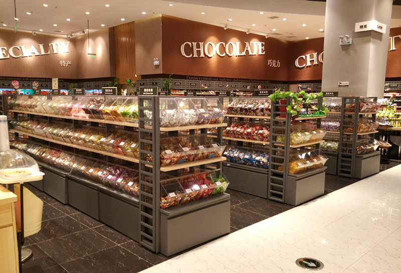 便利店里面肯定會有多組便利店貨架,在對便利店(dian)貨架布局時要考慮到貨架與貨架之間的間距,能讓顧客順利通行且蹲下選購商品的時候也要有足夠的空間,不能讓顧客感覺擁擠,zui好能容納兩個人同時通行,以不小于0.8m為宜。