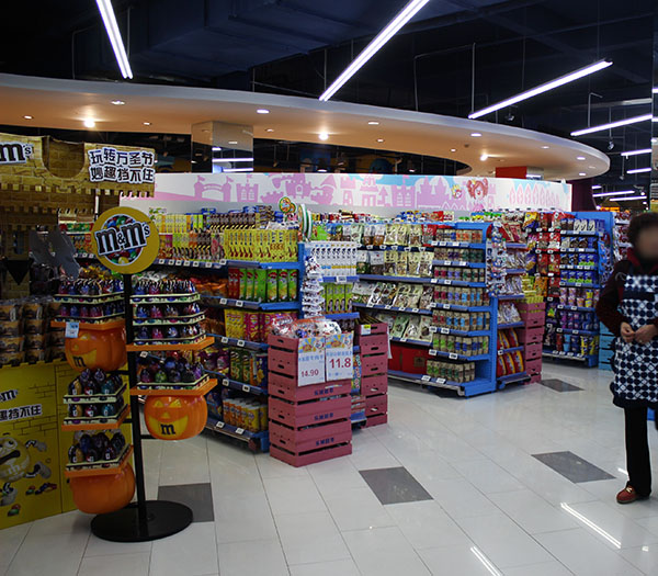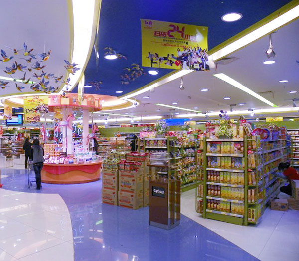 其次,在超(chao)市(shi)里良好的通(tong)道(dao)設計能引導消費者(zhe)經過超(chao)市(shi)內每一個區域,看到店家想(xiang)推(tui)銷給顧客買的產品。要設計一個好的通(tong)道(dao),一定要注意通(tong)道(dao)要有適當(dang)的寬度,方便(bian)顧客的通(tong)行。四川超市貨(huo)架尺寸一般比便利店貨架大,所以為了更好地著照明和使貨架上的產品更美觀,一般通道上方的燈光照明度是強于貨架上方的。明亮的燈光傾斜著照在貨架產品上,會使產品在視覺美觀上更加分,整體賣場的光線更明亮。