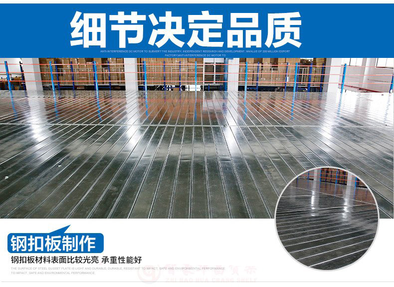 閣樓貨架采用木版、花紋板、鋼板、等材料做樓板,可靈活設計成二層及多層,適用于五金工具。電子器材,機械零配件等物品的小包裝散件儲存,存放多品種,少批量貨物充分利用空間。適用于場地有限品種繁多,數量少的情況下,它能在現有的場地上增加幾倍的利用率,可配合使用升降機操作。全組合式結構,專用輕鋼樓板,造價低,施工快。可根據實際場地和需要,靈活設計成二層、多層、充分利用空間。