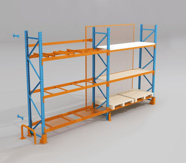 3.橫梁式重型貨架外形更牢靠,防止叉車碰撞還可以增加立柱護腳、防撞桿。為了層載更可靠還可在橫梁上安置橫梁擱擋、層板、網片跨梁等附屬設施;